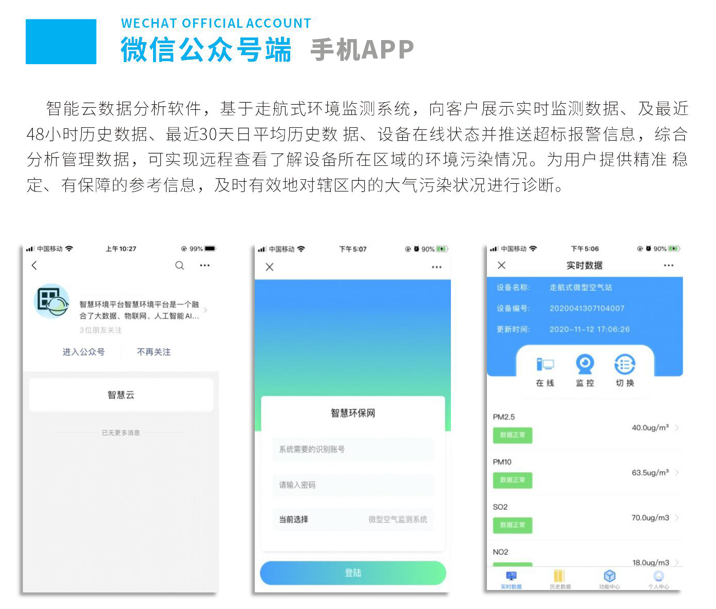 目前已廣泛應(yīng)用于科研實驗,網(wǎng)格執(zhí)法,巡邏檢查,空氣質(zhì)量應(yīng)急排查,網(wǎng)格監(jiān)管盲區(qū)補充,應(yīng)對重污染天氣 ,污染突發(fā)事件,散亂污點位篩選時更具時效性,能快速溯源,數(shù)據(jù)異常排查